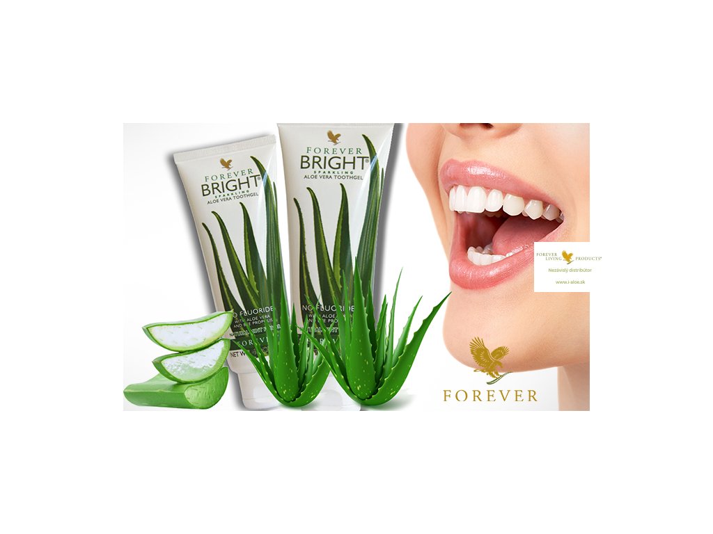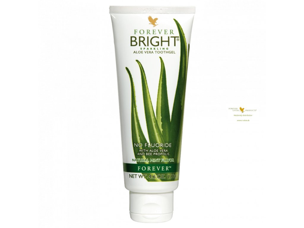 Forever Bright je jedinečný zubný gél na báze aloe vera. Je namiešaný z čistých produktov najvyššej kvality. Tento jedinečný prípravok obsahuje ako základnú zložku stabilizovaný gél z aloe vera. Pridáva sa do nej včelí propolis. Táto kombinácia má nielen vynikajúce antibakteriálne vlastnosti, ktoré zabraňujú tvorbe zubného povlaku a udržiavajú svieži dych, ale vďaka svojim protizápalovým vlastnostiam veľmi dobre pôsobí aj na ďasná.